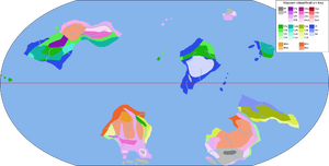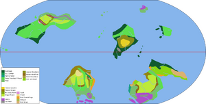 Meptla is traditionally divided into six continents. In this system, the largest landmass is divided into two portions, Klåneva (the southern portion) and Tlava (the northern portion).