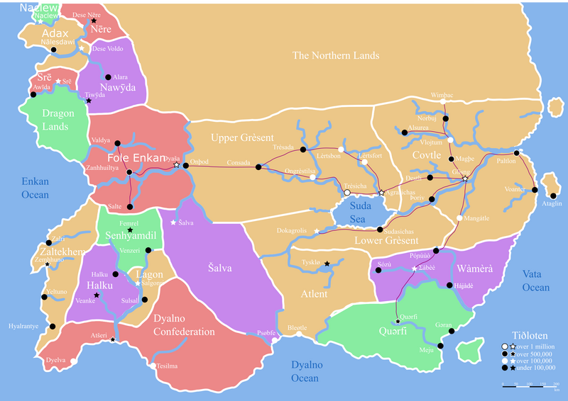 Tiðloten is a continent of Livusle. The continent with the highest amount of industrial development and highest human to dragon ratio, it encompasses a diverse range of ecological regions, including mountains, forests, deserts, prairies, and bogs. Tiðloten also contains many large cities, including Glisng, Dyaša, Agrasichas, and Quərfi. However, the majority of the population continues to live in rural areas.